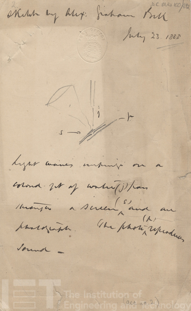 - TitleDrawing and manuscript note titled, 'sketch by Alexander Graham Bell', 1888