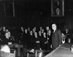 Cockcroft, Sir John, in Savoy Place lecture theatre, receiving the Kelvin Medal, 1957