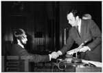 Kirby, Keith, receiving Henry Nimmo Prize from T Mayer, at Savoy Place, 25 October 1973