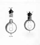- Titledrawing of 2 diagrams of early filament light bulbs- description in JIEE June 1957 Swan carbon-filament lamp with Gimingham's holder 1880-1.