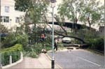 - TitleStorm damage in Savoy Place after the hurricane, 16 October 1987. A tree from Victoria Embankment Gardens fallen across Savoy Place. Shows Waterloo Bridge in background. Men working on removal of fallen tree.