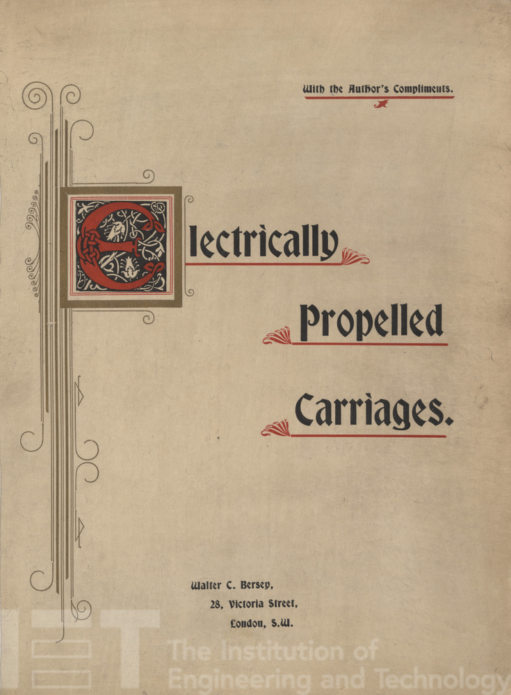 'Electrically propelled carriages', by Walter C Bersey, 1898